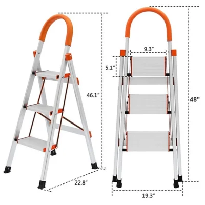 Upgrade your home or office with this 3-Step Foldable Aluminum Ladder, designed for both safety and convenience. Made from high-quality, lightweight aluminum, it is strong yet easy to carry, making it ideal for daily tasks. The non-slip steps provide secure footing, while the sturdy safety handle ensures extra stability when climbing. Its foldable design allows for effortless storage, saving space in closets, garages, or utility rooms. Perfect for reaching high shelves, cabinets, or performing household chores, this ladder combines durability, safety, and portability in one compact solution.