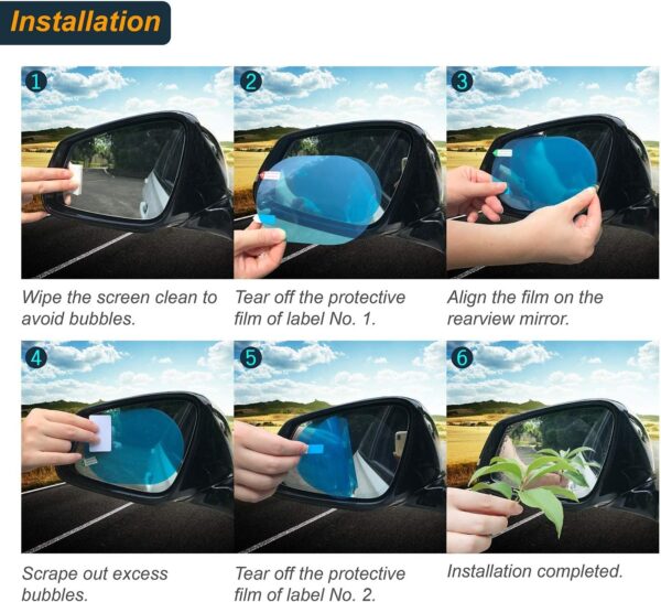 Safety and security: these car mirror waterproof membrane is an innovation that can solve the trouble of not being able to clearly see the rear view mirror on rainy or foggy days, ensures the safety of driving in rainy days, make your life safe and convenient Wide applications: you can cut it at will, suitable for most car rearview mirrors and side windows, such as cars, buses, taxis, trucks, trailers, motors, motorcycles, and so on. You will get 14 products in 3 sizes, of which the circle is the test sticker. It is recommended to use car windows and rearview mirrors at the same time for better results. also provide you 12 sets of tool kit, including alcohol bags, yellow mirror cloth and scrapers, providing you with security and clear vision