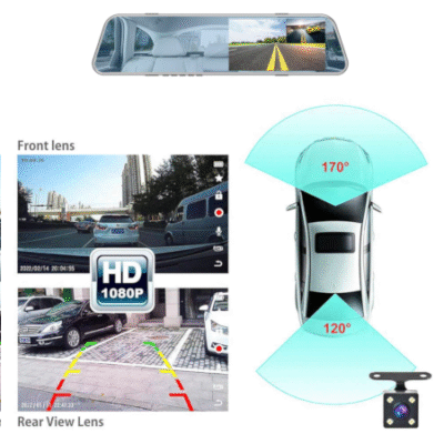 Dual Camera Car DVR Rearview Mirror with 4.3″ LCD Screen – Front & Rear HD Recording Dash Cam for Cars | Fiza.pk