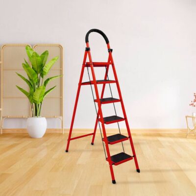 Heavy-Duty 6 Step Folding Ladder Stool with Safety Handle – Portable Anti-Slip Steel Step Stool for Home & Kitchen | Fiza.pk